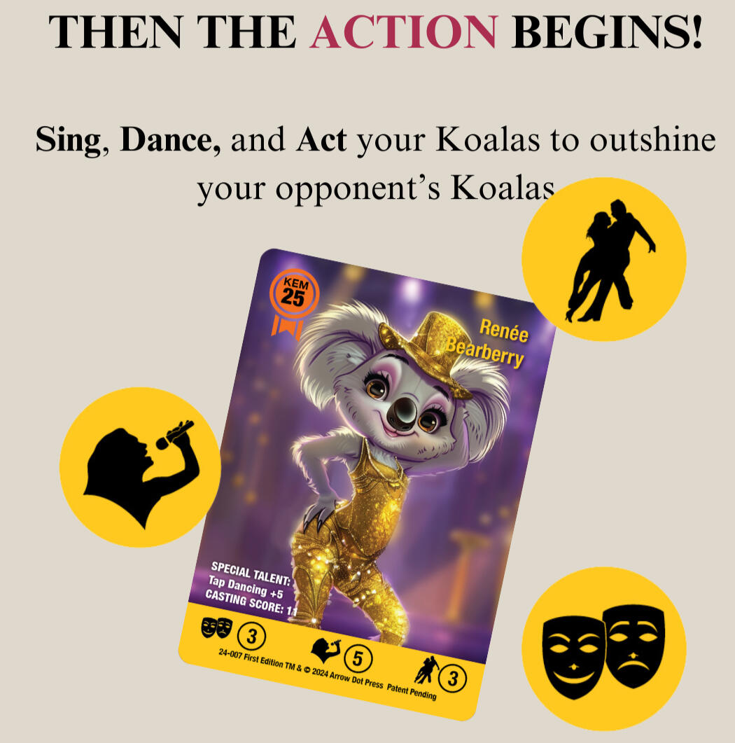 Koalas On Broadway is the First Edition of an exciting TCG deck-building card game where strategy meets theatrical flair. Ages 10 and up for 2-5 players. Pick it up and your favorite game store and set the stage for endless fun!